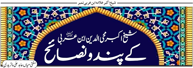 زیر نظر تحریر میں شیخ اکبر محی الدین ابن عربیؒ کے چند پند و نصائح کوبطور نصیحت ذکر کیا جا رہا ہے-