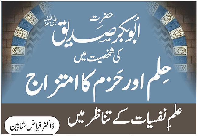 حِلم و حَزم شعوری طور پر سرانجام پانے والے عوامل ہیں،جب حالات و واقعات موافق ہوں تو یہ عوامل ترقی کی منازل طے کرنے میں معاونت کرتے ہیں اور جب مخالف ہوں تو حالات سے ڈٹ کر مقابلہ کرنے کی استعداد پیدا کرتے ہیں-عام طور دیکھا جاتا ہے کہ جب کہیں اپنے رشتوں کی بات ہوتی ہے تو ذاتی مفاد کو ترجیح دی جاتی ہے مگر تاریخِ اسلام کے پنوں میں سنہرے حروف سے رقم ہے کہ یارِ غارِثور حضرت ابو بکر صدیق (رضی اللہ عنہ) نے نہ صرف شعوری طور پر تحمل کا مظاہرہ کیا ،برداشت اور صبر کے عملی پیکر رہے، دور اندیشی سے فیصلے کئے، وہیں حضور(ﷺ) سے والہانہ لگاؤ، محبت اور وارفتگی کا عالم یہ تھاکہ ذاتی فائدے کی بات کا انتخاب نہیں کیا بلکہ وہ فیصلہ کیا جس سے عقل کی دلیلِ سُوء رد ہو گئی اور عشق کا پلڑابھاری رہا-حلم اور حزم کا یہ امتزاج آپؓ کی شخصیت کو نہ صرف متوازن اور مستحکم بلکہ عشق کے منتہائے کمال کو پہنچاتا ہے جو جذباتی طور پر مستحکم ہونے کے ساتھ ساتھ عقلی طور پر بھی مضبوط نظر آتا ہے-